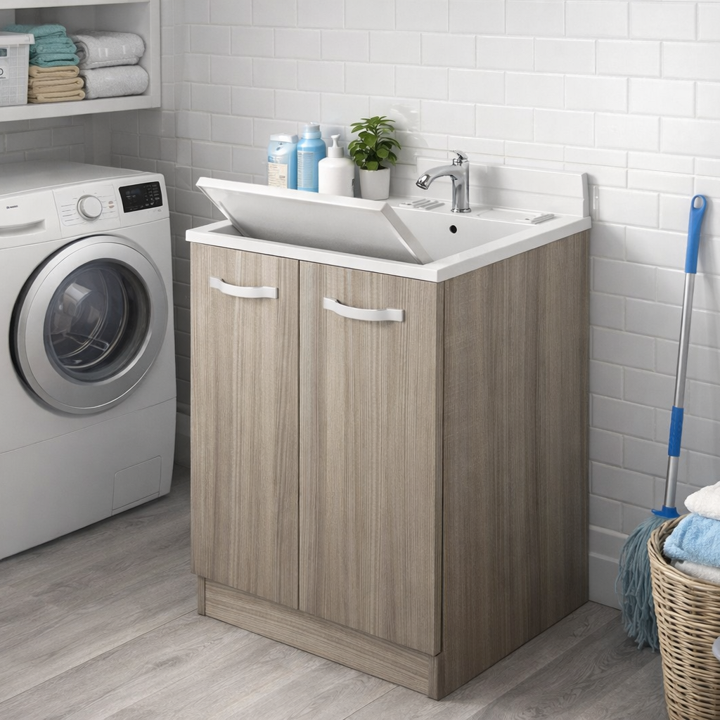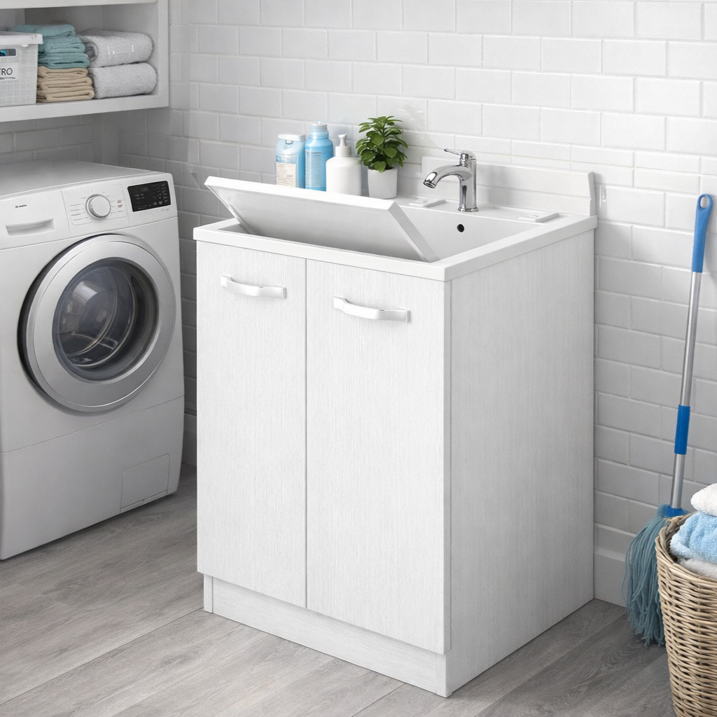 Lavatoio con due Ante di Linea Azzurra 90 elegante funzionale e Made in Italy. Realizzato completamente in Italia, questo lavatoio si distingue per la sua qualità costruttiva superiore e l’attenzione ai dettagli. Caratterizzato da una struttura robusta in legno, simbolo di durata e resistenza. Con le sue dimensioni compatte (H.86, L.61 P.50cm), si adatta perfettamente a qualsiasi ambiente, dalla lavanderia al bagno, offrendo una soluzione pratica e allo stesso tempo esteticamente gradevole.Il lavatoio è completo di vasca, asse lavapanni e sifone. Colorazioni disponibili: Bianco frassinato e Olmo.